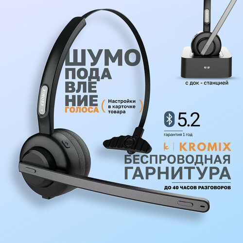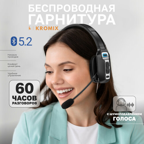 Гарнитура с микрофоном беспроводная Kromix К221, черная, Bluetooth 5.2, для компьютера