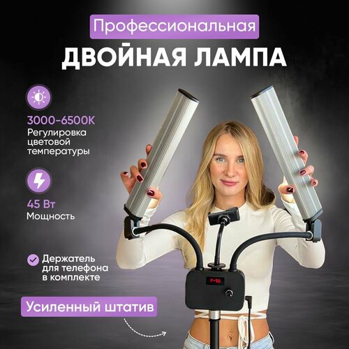 Профессиональная напольная светодиодная лампа рогатка FOTO LAMPA с LED-дисплеем, в комплекте штатив и держатель для телефона