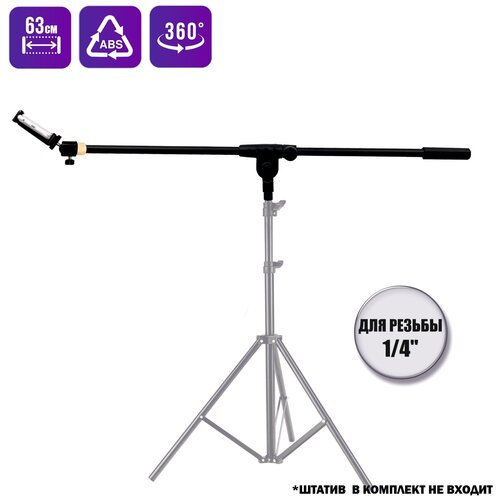 Наклонная стойка PRO-63-14ST с держателем для телефона на шарнире для горизонтальной съемки сверху на штатив с резьбой 1/4"