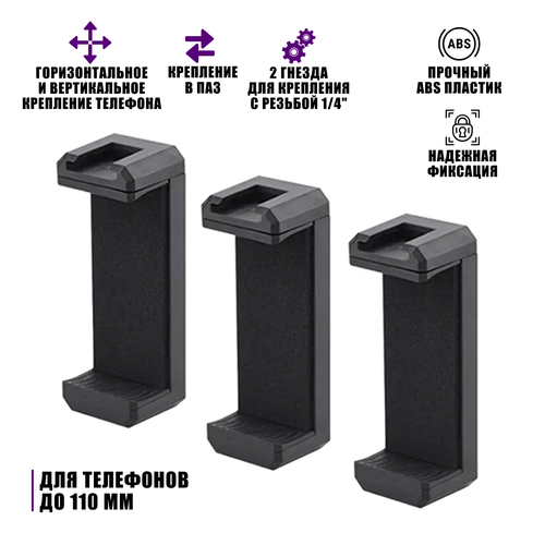 Крепление держатель DT-PAZ для смартфона с резьбой 1/4 и крепежом в паз, 3 шт