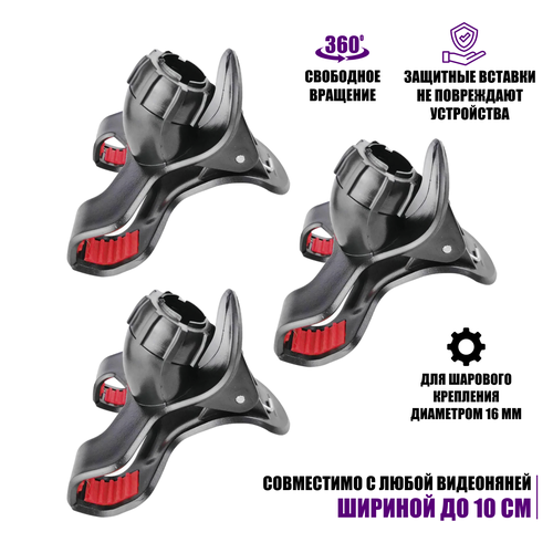 Держатель прищепка для смартфона на шаровое крепление, 3 шт