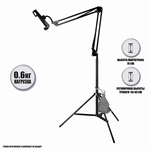 Напольная стойка пантограф JBNB-8357K с крючком для противовеса с гибким держателем для телефона или планшета шириной до 25 см