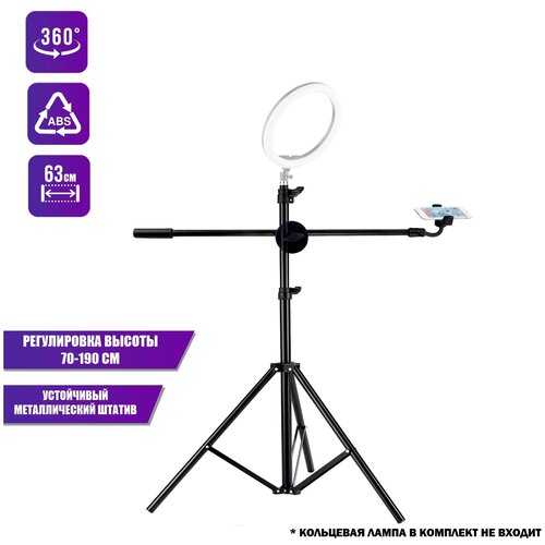 Напольная стойка для кольцевой лампы LS-G17-В на усиленном штативе (LS8806) для съемки сверху с держателем для телефона и кнопкой Bluetooth