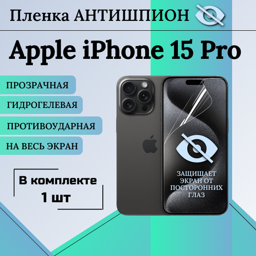 Гидрогелевая защитная пленка для iPhone 15 Pro антишпион глянцевая на весь экран 1 шт