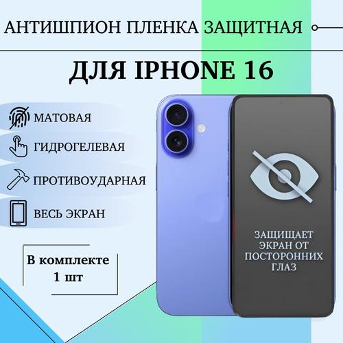 Гидрогелевая пленка для IPhone 16 антишпион защитная полиуретановая матовая на весь экран 1шт