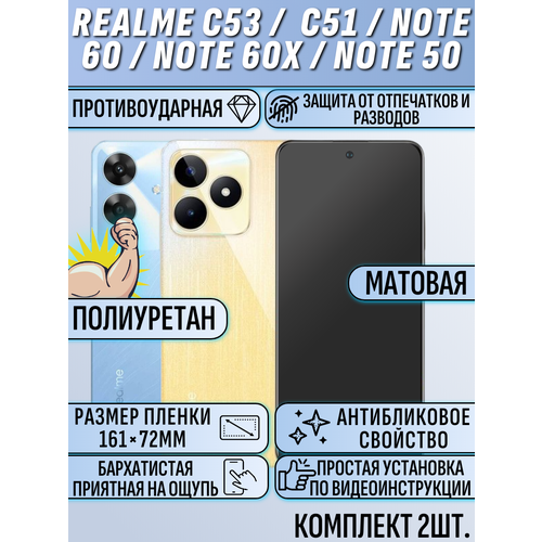 Гидрогелевая пленка realme C53 / C51 / note 60 / note 60x / note 50 защитная матовая на весь экран 2 шт