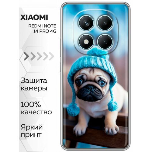 Чехол для Redmi Note 14 Pro 4G с принтом Щенок мопса в шарке (Редми Нот 14 Про 4G)