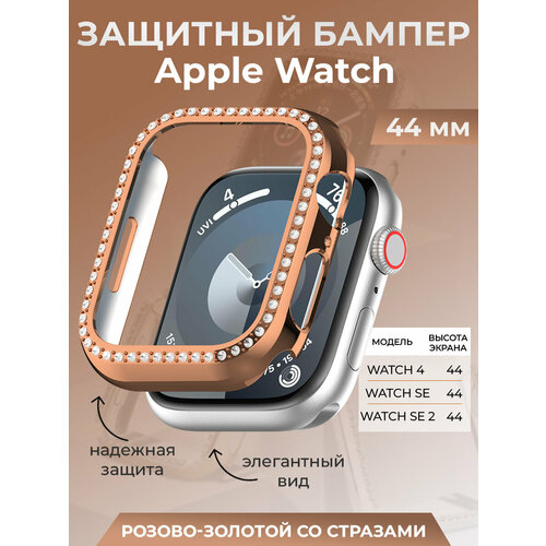 Защитный бампер для Apple Watch 44 мм, со стразами, розово-золотой