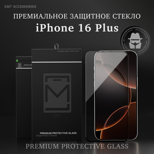 Защитное стекло iPhone 16 Plus, Антишпион, Олефобное покрытие, Противоударное, Закаленное, Премиальное