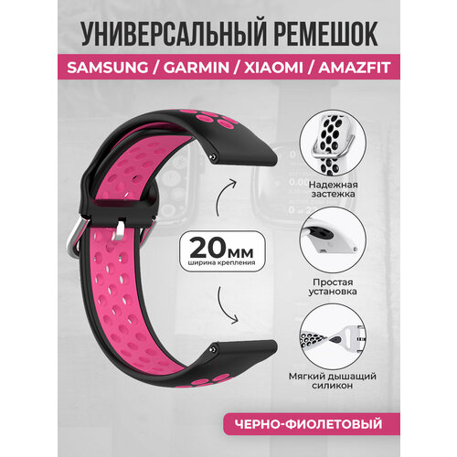 Универсальный ремешок для Samsung, Garmin, Xiaomi, Amazfit, 20 мм, черно-фиолетовый