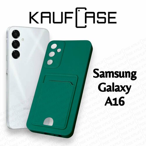 Силиконовый матовый чехол на Samsung A16 5G (6.7"), темно-зеленый. Карман для пластиковых карт