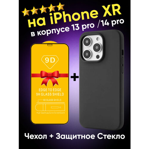 Чехол + защитное стекло на iPhone XR в корпусе 13-14 про / Чёрный Чехол