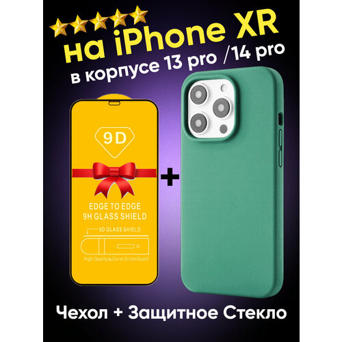 Чехол + защитное стекло на iPhone XR в корпусе 13-14 про / Зелёный Чехол