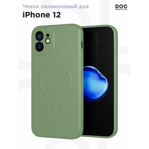 Чехол DesignOnCase "оливковый", для iPhone 12, противоударный, силикон, soft-touch, с Магнитом