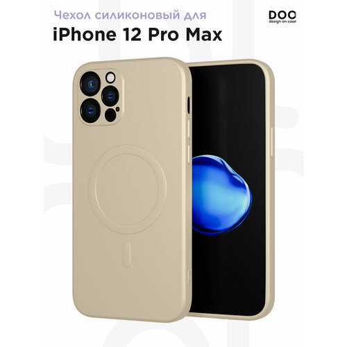 Чехол DesignOnCase "бежевый", для iPhone 12 Pro Max, противоударный, силикон, soft-touch, с Магнитом