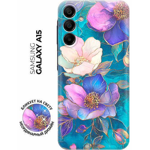 Силиконовый чехол на Samsung Galaxy A15 с принтом "Фиолетовые цветы и листья"