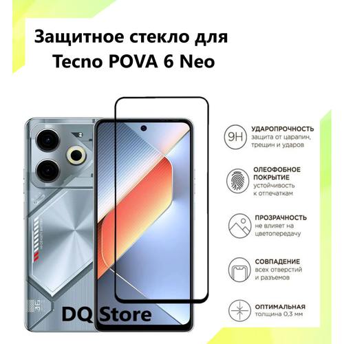 Защитное стекло на Tecno POVA 6 Neo / Техно пова 6 Нео . Полноэкранное защитное стекло с олеофобным покрытием