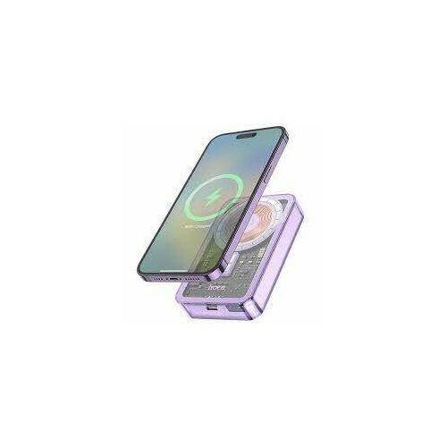 Магнитный аккумулятор с беспроводной зарядкой HOCO Q14A Ice Crystal, 10000 mAh, Qi 15W/PD 20W, Пурпурный+Прозрачный