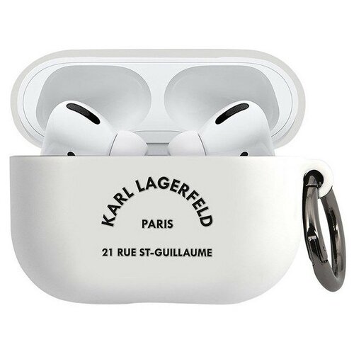 Чехол с карабином CG Mobile Karl Lagerfeld Silicone RSG logo with ring для AirPods Pro, цвет Белый/Черный (KLACAPSILRSGWH)