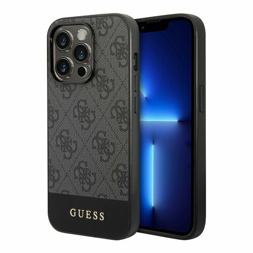 Guess для iPhone 15 Pro чехол кожа PU с принтом 4G Bottom stripe Metal logo, серый