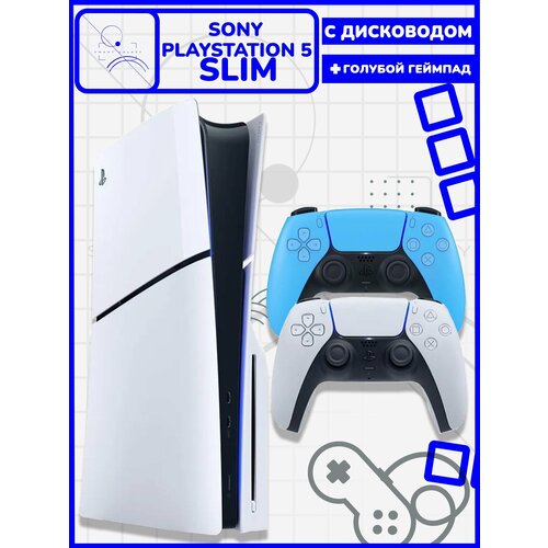 Sony PlayStation 5 Slim с дисководом + 2й голубой геймпад PS5