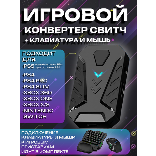 Игровая Клавиатура и мышь + конвертер контроллер к PS3 PS4 PS5 XBOX 360 Xbox One Series S X Nintendo Switch + выход 3.5 Jack.