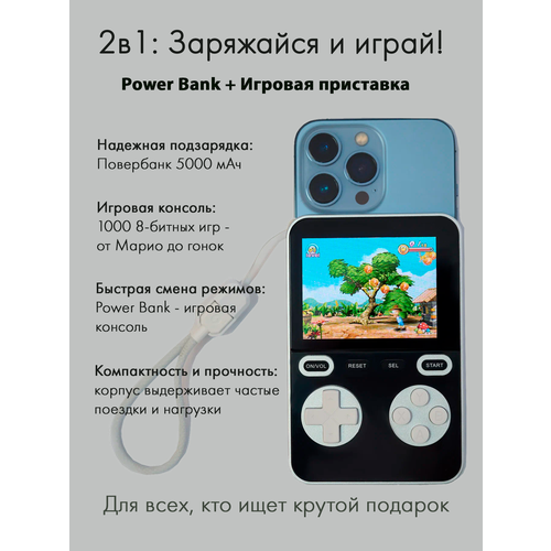 Ретроконсоль Повербанк с беспроводной зарядкой, 5000mAh / Портативная Игровая приставка консоль 1000 игр
