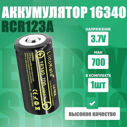 Аккумулятор LiitoKala 16340 (RCR123A) 3.7V 700 mAh для тепловизоров, ночных прицелов 1 шт.