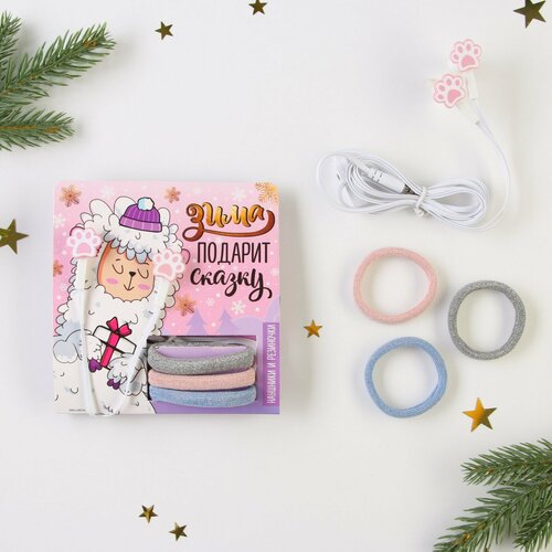 Проводные наушники и резинки для волос «Зима подарит сказку», набор