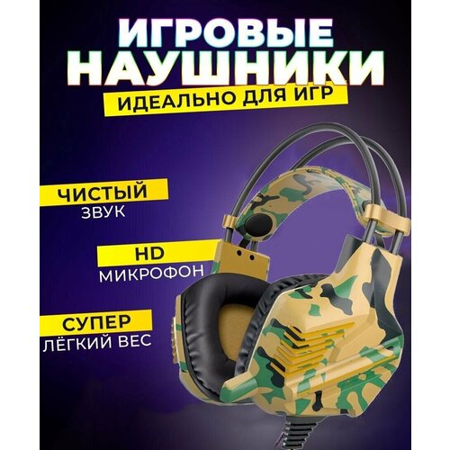Наушники Игровая гарнитура , проводные Полноразмерные игровые/геймерские наушники, Гарнитура для PC, MAC, разъем mini jack 3.5, цвет хаки