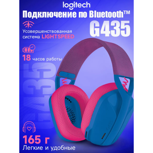 Беспроводная гарнитура Logitech G435 Lightspeed синий/малиновый