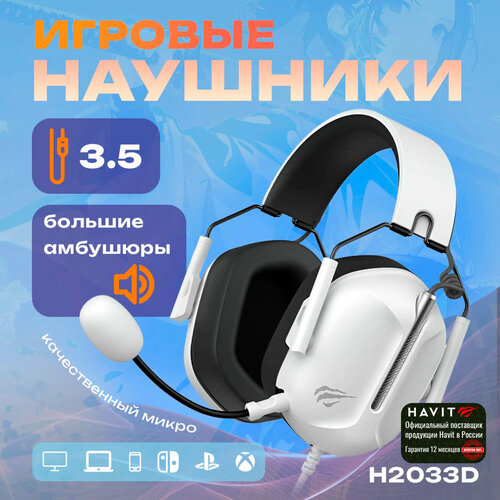 Наушники игровые проводные. Геймерская гарнитура с микрофоном для ПК, компьютера, ноутбука Havit H2033d белый 3.5 jack