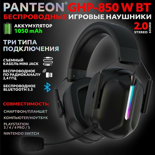 Наушники PANTEON GHP-850 W BT Black, игровые, беспроводные, с LED-подсветкой