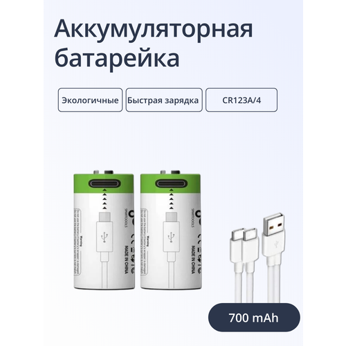 Аккумуляторная батарейка ABC Тип CR123A*2 шт, емкость 700mAh, перезаряжаемая