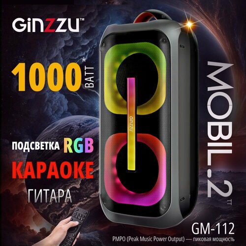 Портативная беспроводная блютус колонка Ginzzu GM-112 черного цвета