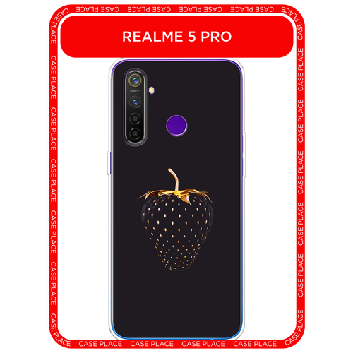 Чехол на Realme 5 Pro / Реалми 5 Про с принтом Черно-золотая клубника