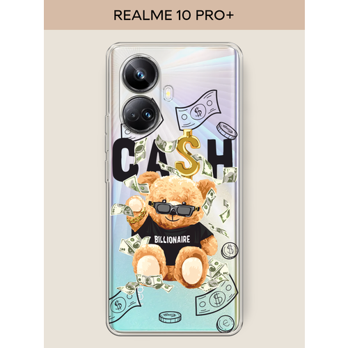 Чехол на Realme 10 Pro+ / Реалми 10 Про+ с принтом Cash медвежонка, прозрачный