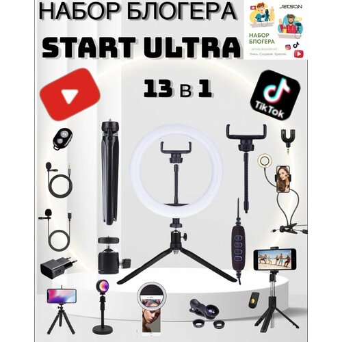 Подарочный набор юного начинающего блогера с кольцевой лампой и микрофоном для творчества Start Ultra 13 в 1
