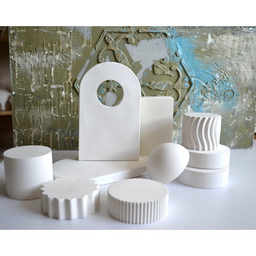 Набор разнообразных фигур для предметной съемки. Фотофон. Современный фотореквизит гипсовый.