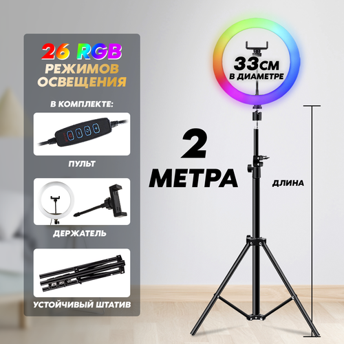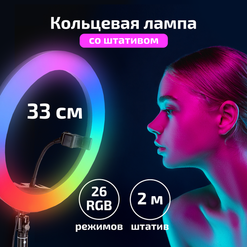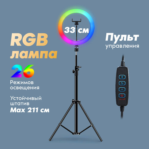 Кольцевая лампа со штативом, WALKER, WLR-3350R, 33 см, RGB // видеосвет, свет для видеосъемки, godox, кольцевая лампа, свет для фотосъемки