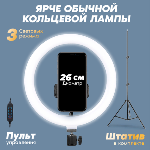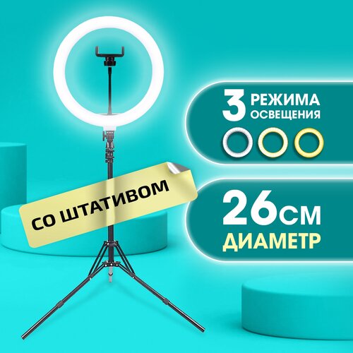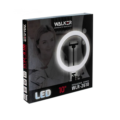 Кольцевая лампа со штативом для телефона и фотоаппарата, WALKER, WLR-2610, 26см, LED лампа белого света для селфи, кольцо для фото и видео, осветитель