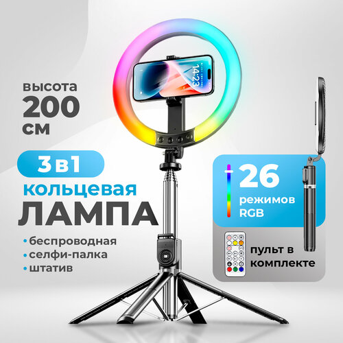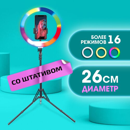 Кольцевая лампа RGB на усиленной стойке ST-3526, с держателем телефона, шарниром, диаметр 26 см