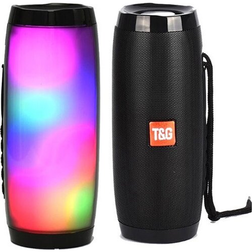 Беспроводная музыкальная колонка TG, компактная и удобная, не занимает много места в сумке. Несколько вариантов подсветки позволят выбрать то, что вам по вкусу. Для полного отключения подсветки нужно на несколько секунд задержать кнопку переключения световых режимов. Воспроизводит музыку через bluetooth, карты памяти micro SD, USB Flash и линейный AUX вход.