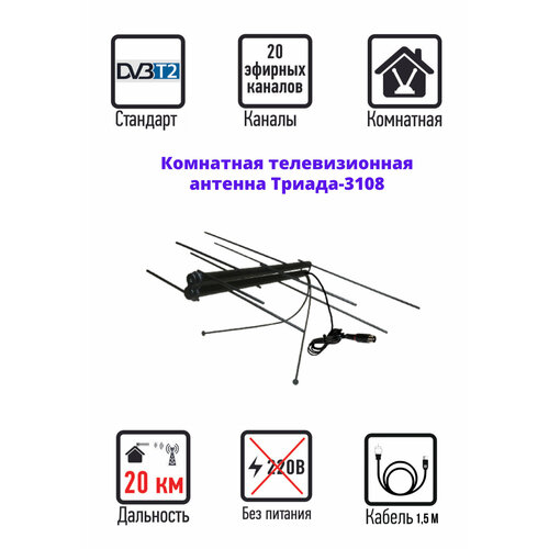 Цены на Комнатная телевизионная антенна "Триада-ANT-3310" направленная активная цифровая, ДМВ, DVB-T2 для отражённого и прямого сигнала, черная в г. Пермь