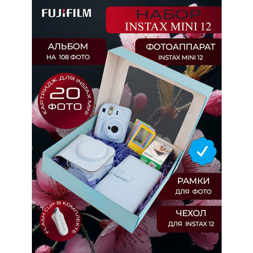 Набор с фотоапаратом Fujifilm Instax Mini 12 и аксессуарами, 20 снимков, фотоальбом, чехол, голубой