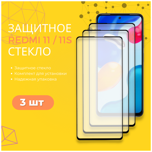 Комплект 3 в 1: Защитное стекло (3 шт.) для Xiaomi Redmi Note 11 4G/ 11S / Полноэкранное стекло Ксиоми (Сяоми) Редми Ноут 11 4г / 11S
