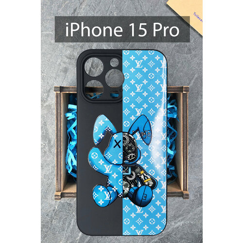 Силиконовый защитный чехол на iPhone 15 Pro с принтом Заяц голубой