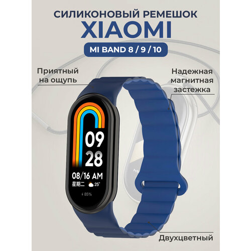 Силиконовый ремешок для Xiaomi Mi Band 8/ 9, с магнитной застежкой, темно-синий - светло-синий