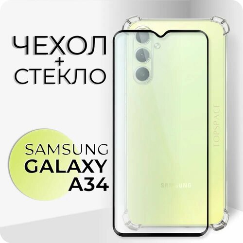 Комплект 2 в 1: Чехол № 03 + стекло для Samsung Galaxy A34 / Прозрачный бампер с защитой камеры и углов для Самсунг Галакси А34