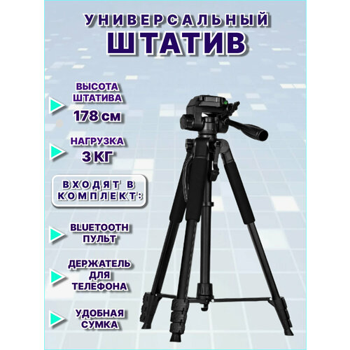 Штатив Tripod, для камеры, телефона и фототехники, Bluetooth, черный, максимальная высота 178 см